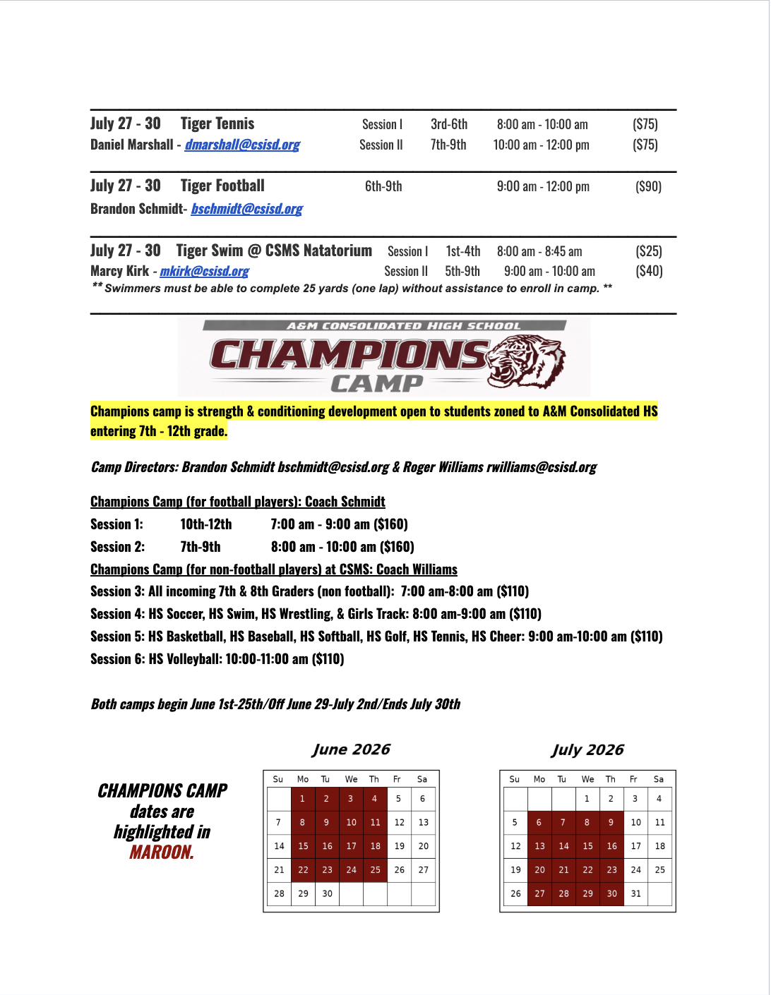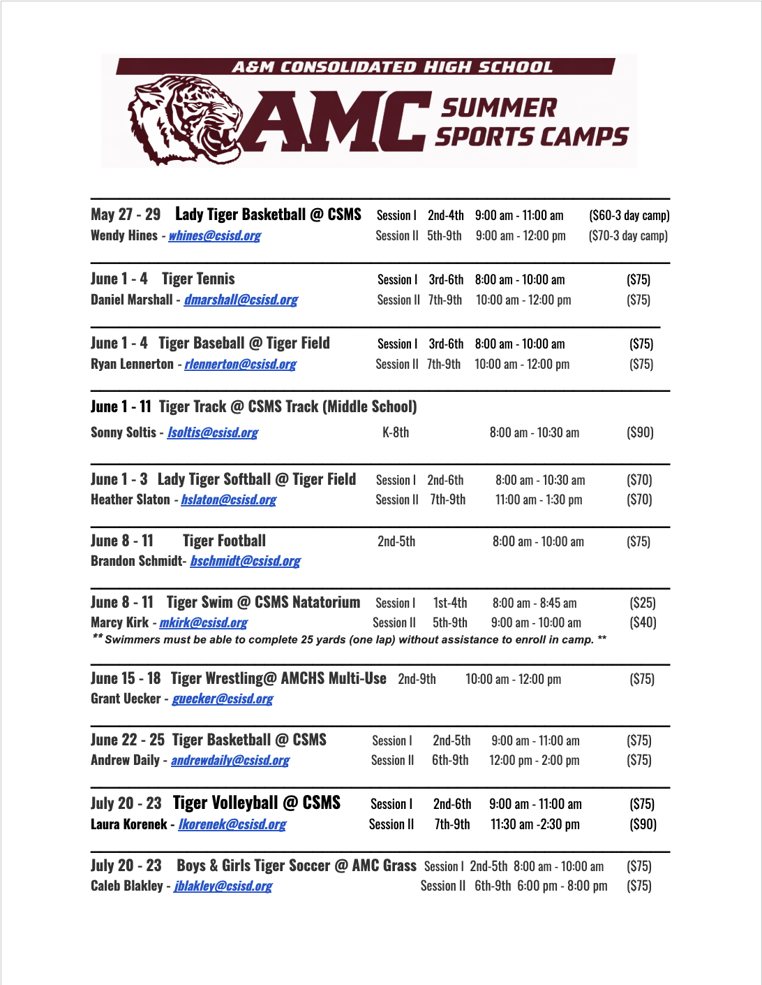 2026 Summer Camps